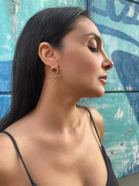 Ankh Egizio mono orecchino in bronzo con Rodolite
