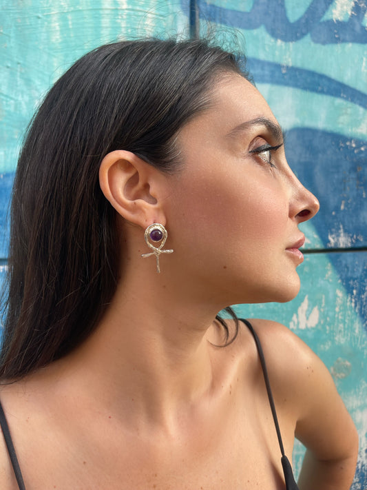 Orecchino Ankh Egizio ciondolo in argento con ametista