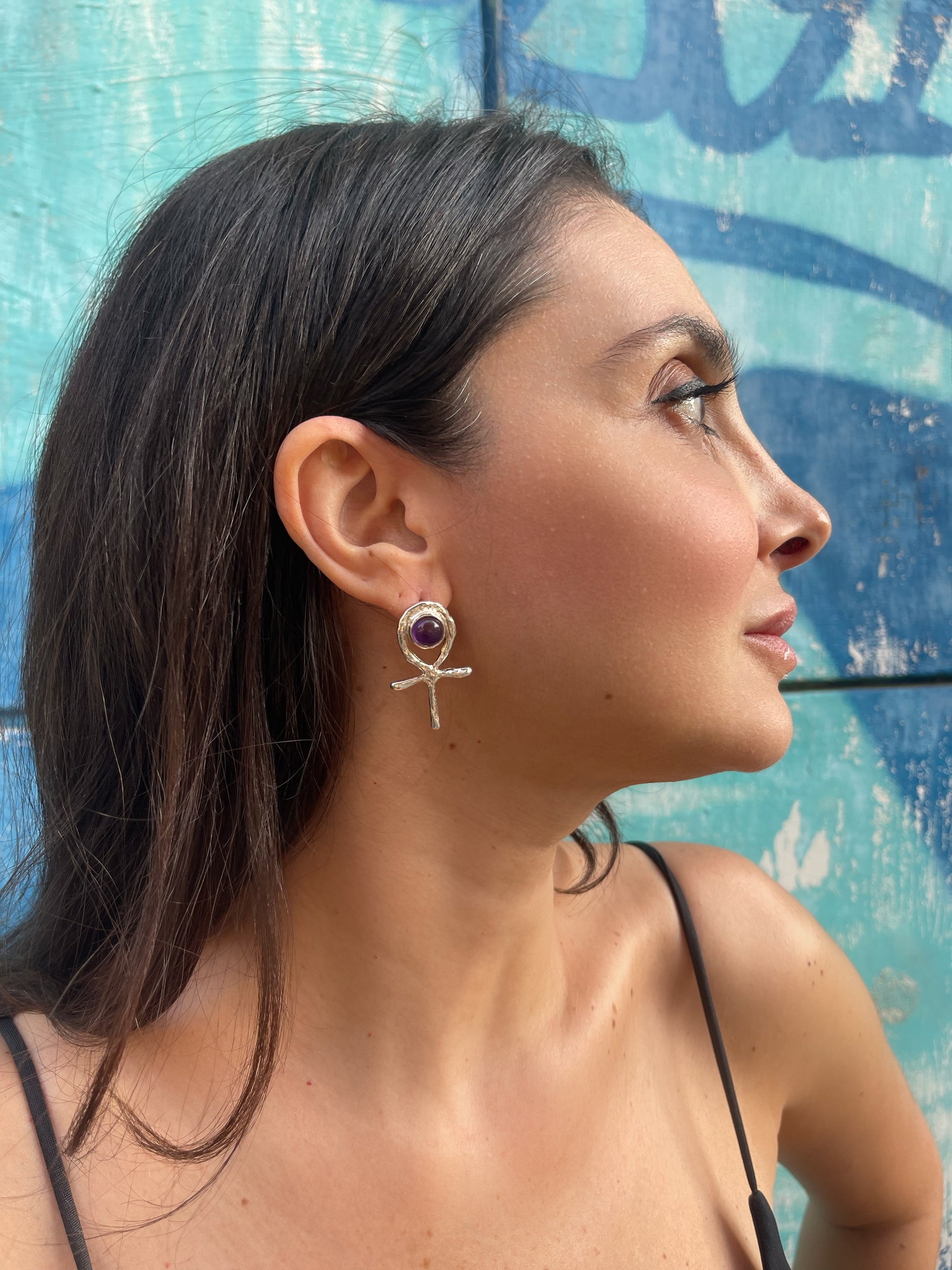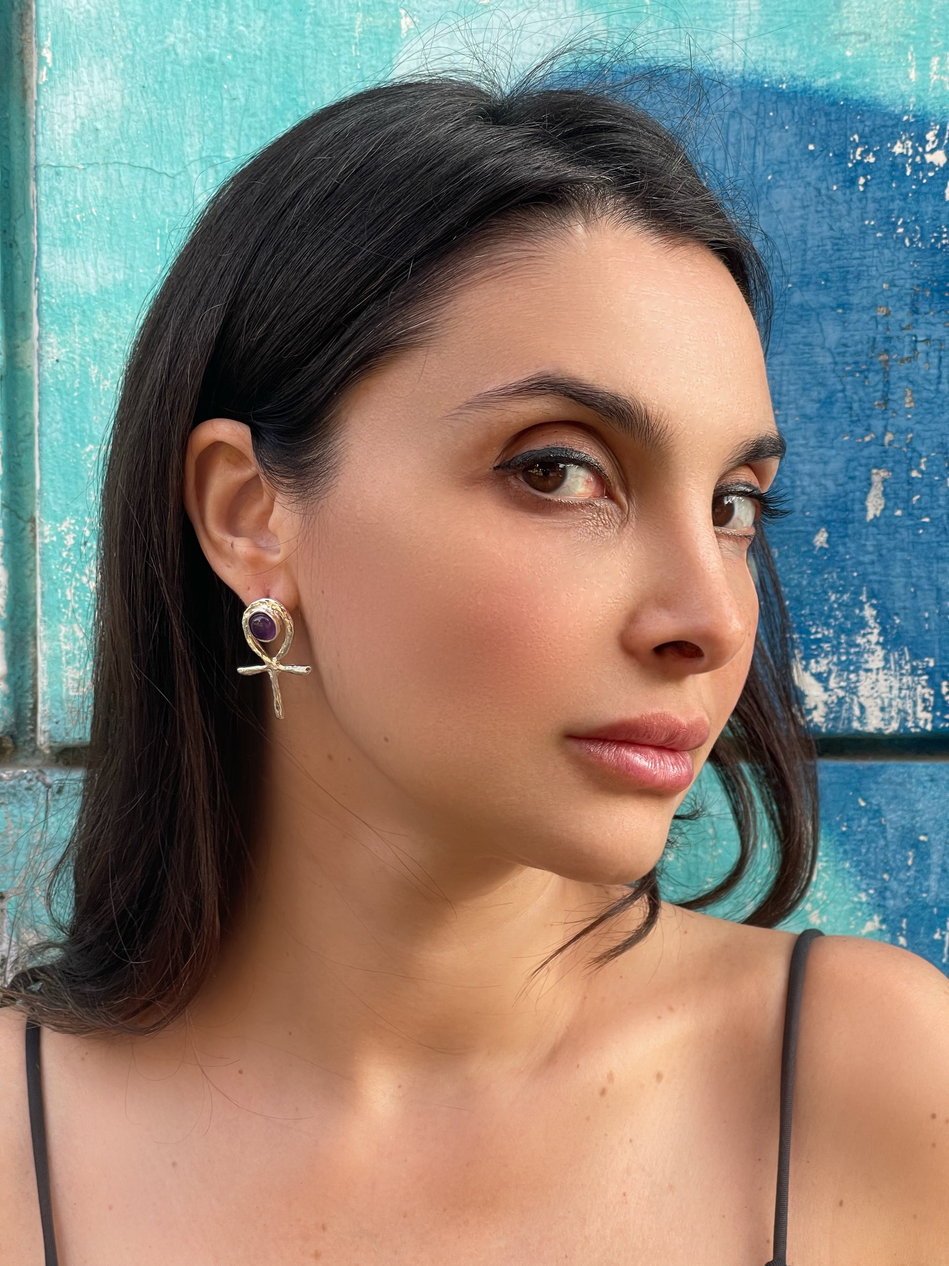 Orecchino Ankh Egizio ciondolo in argento con ametista